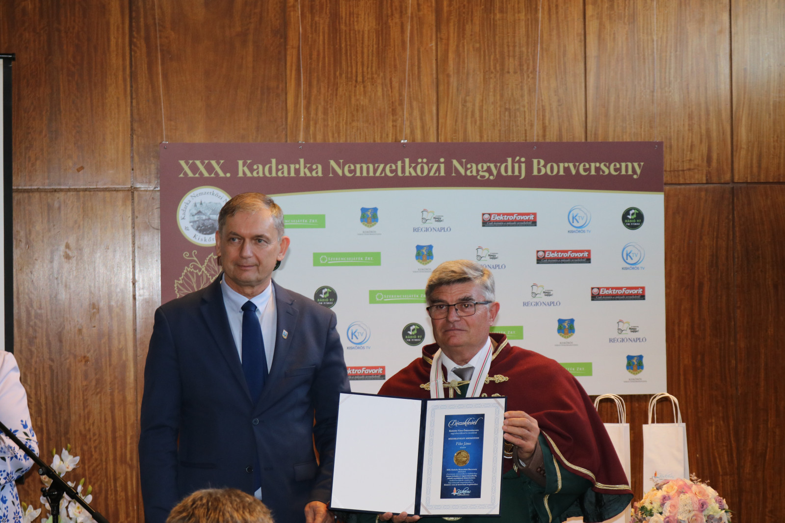 A polgármester amellett, hogy felidézte a három évtized főbb mérföldköveit, önzetlen és áldozatos munkájukért elismerését fejezte ki a Kadarka Borversenyt útjára indító és hosszú időn át szervező István Borház tulajdonosának, Csengődi Istvánnak és segítőinek, valamint Filus Jánosnak.