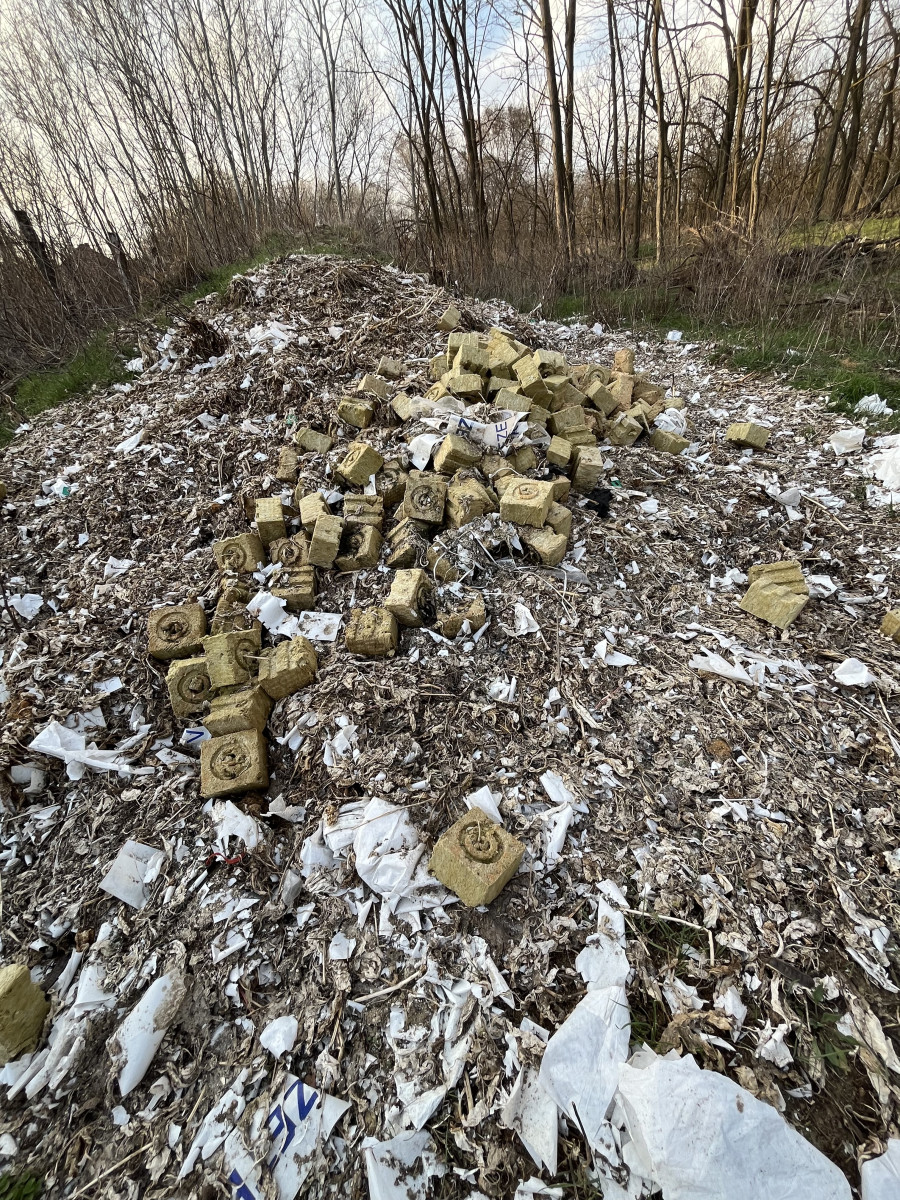 De nem csak a fóliát tárolja Judák Zsolt a földjein ömlesztve, hanem – olvasónk által szerkesztőségünkhöz eljuttatott fényképek tanúsága szerint – növényi hulladékok közé keverve, ömlesztetten elhasznált kőzetgyapot tápkockákat, amelyekből láthatóan nincsenek eltávolítva a műanyag részek, valamint műanyag zsákokat, bennük talán kimerült termesztőközeggel.